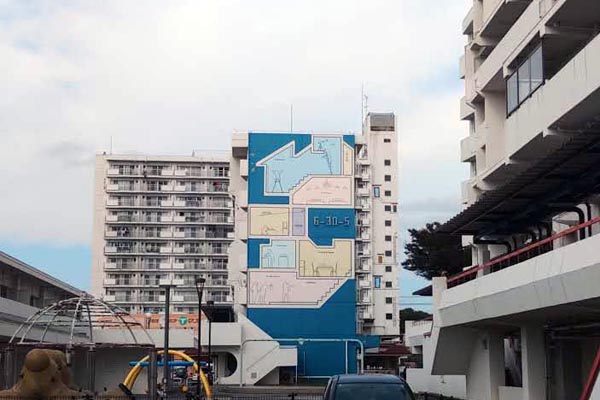 実際に、戸頭団地の6街区から4街区(壁画が描かれているエリア)のアパートは、1階から3階までの埋まり具合は良いが、4階5階の空きが多いように見えた。